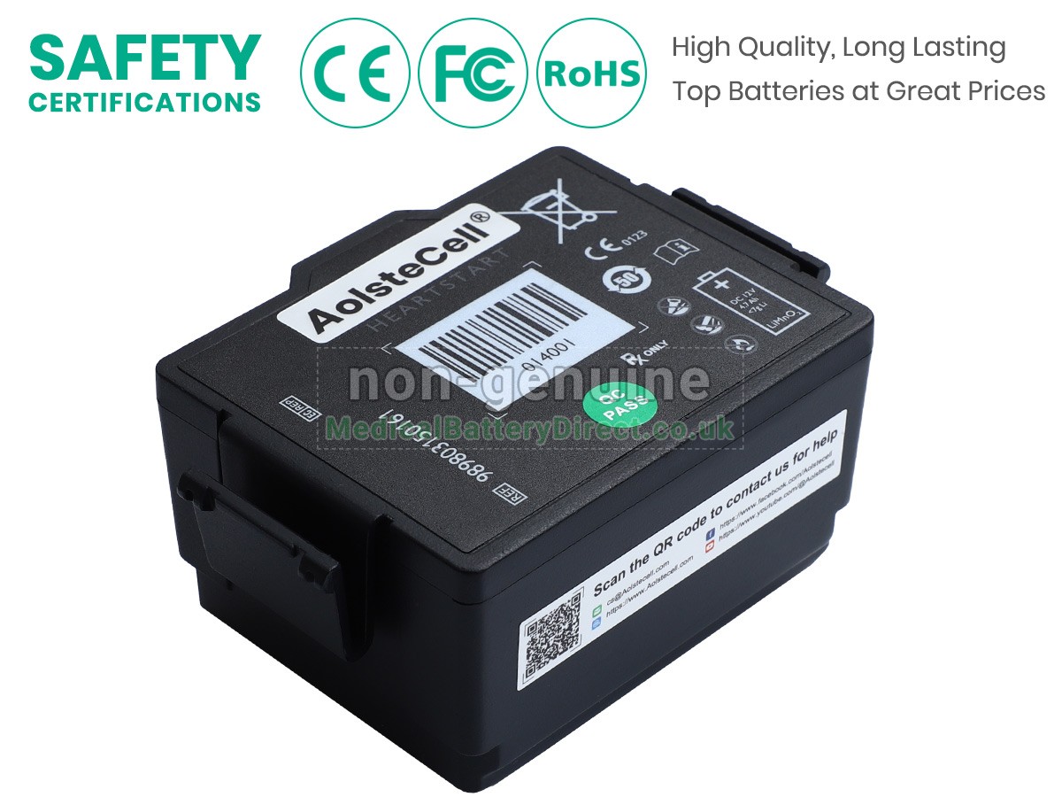 In the medical field, safety is paramount. All Philips HEARTSTART FR3 batteries undergo multiple safety tests and strict quality inspections, holding certifications such as UKCA, CE, ISO 9001:2015, RoHS, and IEC 62133. Integrated safeguards against over-charging, over-discharging, short-circuiting, and overheating further reduce potential risks. This dual protection ensures dependable operation and peace of mind in every critical situation.